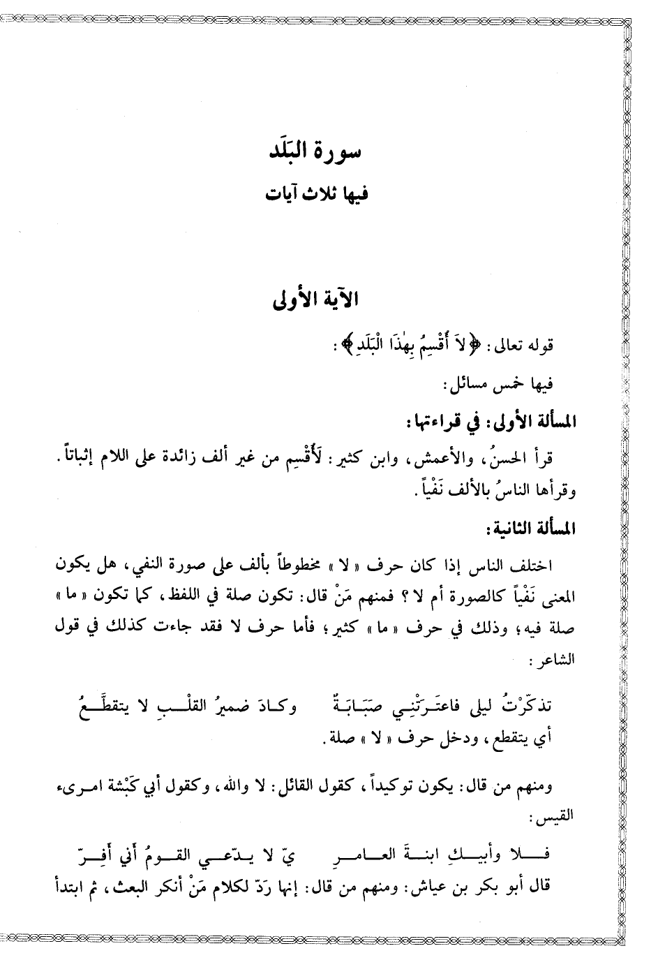[سُورَةُ الْبَلَدِ فِيهَا ثَلَاثُ آيَاتٍ] [الْآيَةُ الْأُولَى قَوْله تَعَالَى لَا أُقْسِمُ بِهَذَا الْبَلَدِ]