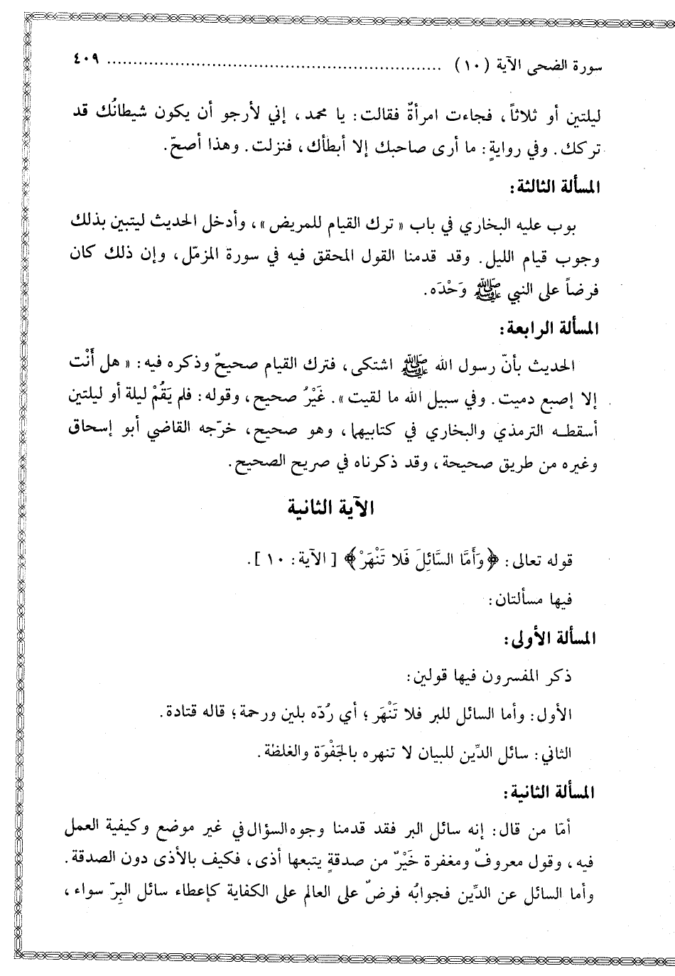 ْ} [الضحى: 10]: فِيهَا مَسْأَلَتَانِ: