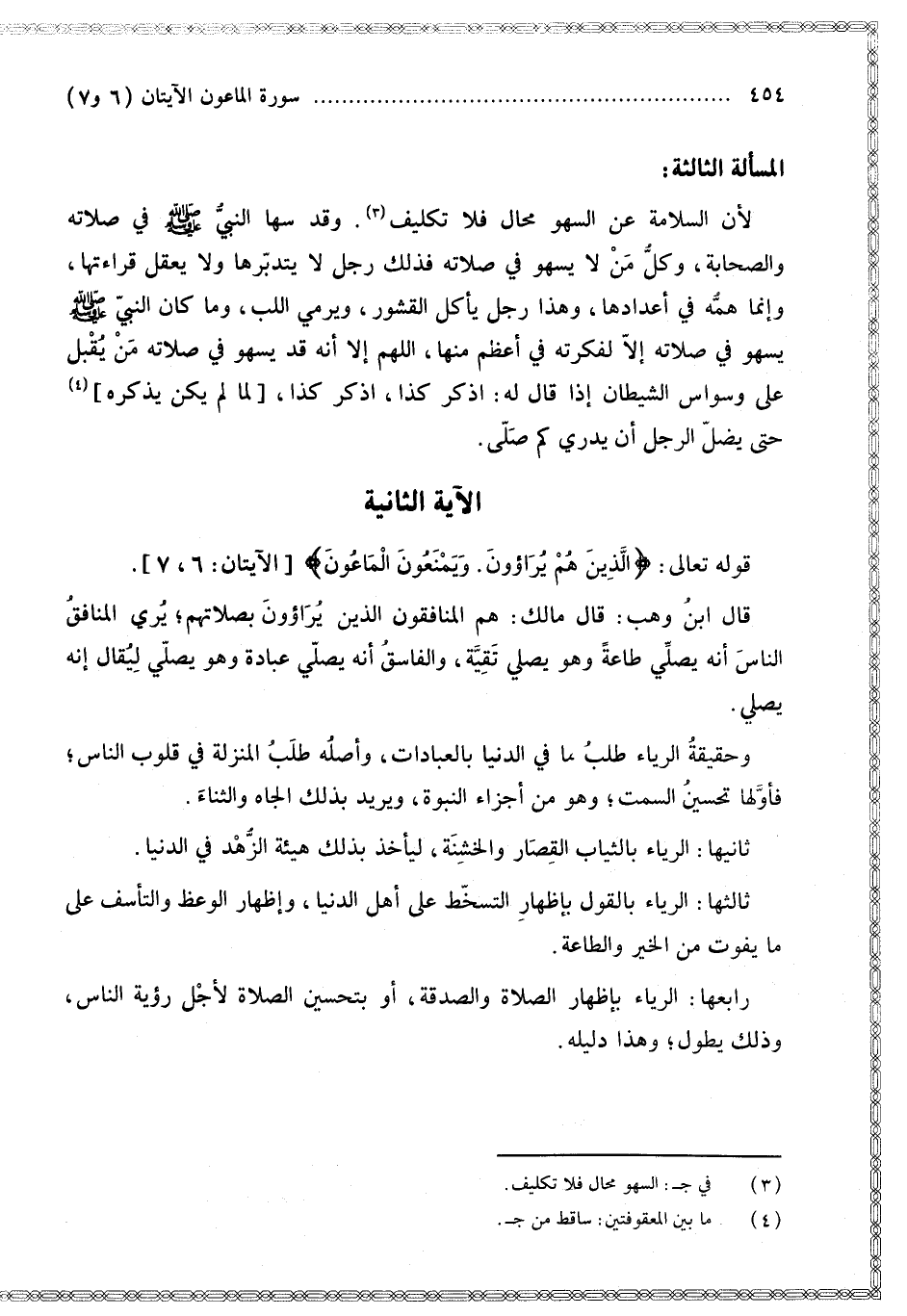 الْآيَةُ الثَّانِيَةُ قَوْله تَعَالَى: {الَّذِينَ هُمْ يُرَاءُونَ} [الماعون: 6] {وَيَمْنَعُونَ الْمَاعُونَ} [الماعون: 7].