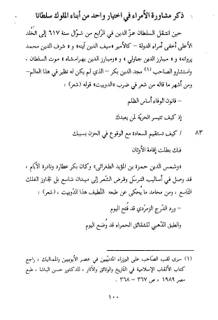 ذكر مشاورة الأمراء في اختيار واحد من أبناء الملوك سلطانا