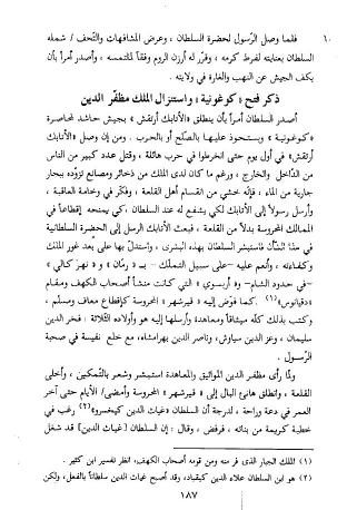 فلما وصل الرّسول لحضرة السلطان، وعرض المشافهات والتّحف/ شمله السلطان بعنايته لفرط كرمه، وقرّر له أرزن الروم وفقا لملتمسه، وأصدر أمرا بأن يكف الجيش عن النهب والغارة في ولايته.