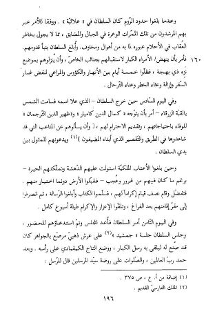 فتفضّل وقام نصف قيام إكراما لهم، فسلّموا الكتاب وأبلغوا الرّسالة، ثم انصرفوا إلى مقرّ إقامتهم بعد الفراغ، وتلقّوا الإعزار والإكرام طيلة أسبوع كامل.