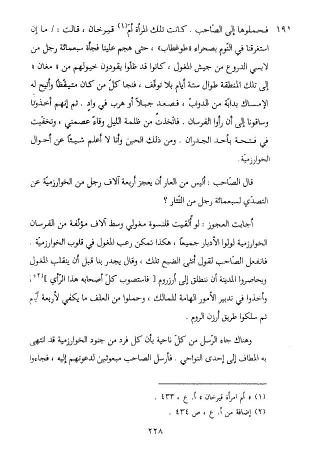 فحملوها إلى الصّاحب. كانت تلك المرأة أمّ (¬1) قير خان، قالت:/ ما إن استغرقنا في النّوم بصحراء «طوغطاب»، حتى هجم علينا فجأة سبعمائة رجل من لابسي الدروع من جيش المغول، كانوا قد ظلّوا يقودون خيولهم من «مغان» إلى تلك المنطقة طوال ستة أيام بلا توقّف، فنجا كلّ من كان متيقّظا وأتيح له الإمساك بدابّة من الدوابّ، فصعد جبلا أو هرب في واد. ثم إنهم أخذونا وساقونا إلى أن رأوا الفرسان. فاتّخذت من ظلمة الليل وقاء عصمني، وتخفّيت في فتحة بأحد الجدران. ومن ذلك الحين وأنا لا أعلم شيئا عن أحوال الخوارزميّة.