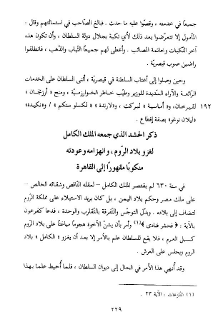 ذكر الحشد الذي جمعه الملك الكامل لغزو بلاد الرّوم، وانهزامه وعودته منكوبا مقهورا إلى القاهرة