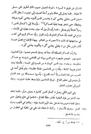 للقتال عن طريق «البيرة»، فوجّه الجيش صوب ذلك الطّريق على سبيل الاحتياط. فلما وصل إلى هناك ولم ير أحدا انصرف إلى خرتبرت [وظل الأمير «مبارز الدين جاولي چاشني كير» و «شمس الدين ألتونبه چاشني كير» يتريثان ويتابطآن حتى تلحق بهما بقيّة العساكر] (¬1)، وأرسلا إلى [كمال الدين] رسولا فتباطأ ولم يتعجّل، فلما رأى الرّسول أنه سوف يحدث تهاون في الإمداد، صاح في الجند بأن عساكر الشام قد ولّت الفرار، وأن عساكر الروم التي كانت في مواجهتها قد نالت ما لا حصر له من الغنائم. وبهذا الإطماع انضمّ خمسة آلاف فارس بكل من «چاولي چاشني گير» و «ألتونبه چاشني گير».