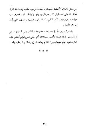 وقد تركوا بوابة «أرزنجان» وحدها مفتوحة، وأغلقوا باقي البوابات، حتى دخل بعض الجند المدينة فأغاروا مدة ثلاثة أيام. وفي اليوم الرابع أغلقوا ذلك الباب بدوره، ولم يعودوا يسببون قلقا أو إزعاجا. ثم إنهم انطلقوا إلى «قيصرية».