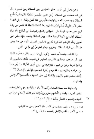 ولما انقضت بضعة أيام ذهب زكريا إلى فاسليوس وقال: إن أبناء الملوك ذوو حّس مرهف، ينتابهم الملل من الجلوس في البيت. فأذن فاسليوس بأن يركبوا للنزهة مرتين في اليوم، فيتنزهون في مروج أزنيق الأنيقة، [وأمر عددا من خواصه بملازمتهم، فغمرهم زكريا الحاجب بالإنعام والإحسان] (¬1)، وأخذ يستدرجهم بالإيهام والكناية إلى حيّز الدعوة، فأقسموا (¬2) بالإنجيل والصليب.