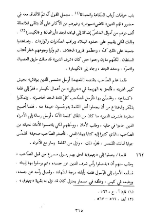 باب خرافات أرباب السّفاهة والحماقة (¬1). مجمل القول أنّه تمّ الاتّفاق معه في حضور «نجم الدين» قاضي «سيواس» وغيرهم من الأكابر على أن يتلقى ثلاثمائة ألف درهم من أموال الخاصّ إضافة إلى قيادته لجند «أرزنجان» و «نكيسار» (¬2).
