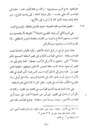 وفي اليوم التّالي أمر و «ولد الطوسي» إخوان (¬1) «قونية» بأن يقتحموا بيت الصّاحب ومعهم السّلاح وكتيبة من المفاردة وغلمان الحرس السلطاني، وأن يلازموا الصّاحب ويحضروه برسم التّوكيل.