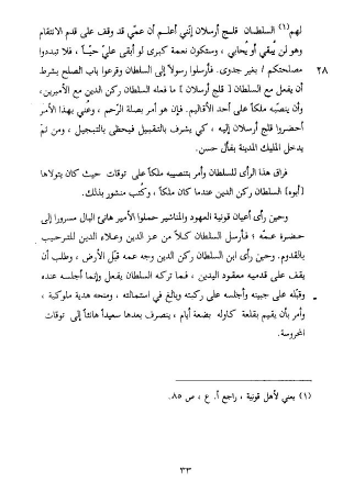 لهم (¬1) السلطان قلج أرسلان إنّني أعلم أن عمّي قد وقف على قدم الانتقام وهو لن يبقي أو يحابي، وستكون نعمة كبرى لو أبقى عليّ حيّا، فلا تبددوا مصلحتكم/ بغير جدوى. فأرسلوا رسولا إلى السلطان وقرعوا باب الصلح بشرط أن يفعل مع السلطان [قلج أرسلان] ما فعله السلطان ركن الدين مع الأميرين، وأن ينصّبه ملكا على أحد الأقاليم. فإن هو أمر بصلة الرّحم، وعني بهذا الأمر أحضروا قلج أرسلان إليه، كي يشرف بالتقبيل فيحظى بالتبجيل، ومن ثمّ يدخل المليك المدينة بفأل حسن.