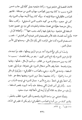 وفجأة اختفي من ساحة الدّيوان والحضرة «أثير الدين» الملقّب بالمنجّم، والذي كان من بين أتباع الصّاحب «الطّغرائي» ولم يكن له نظير في الدّهاء