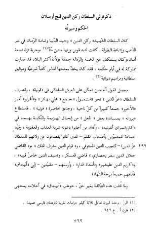 كان السلطان الشّهيد «ركن الدين» وحيد الدّنيا وشامة الزّمان في نثر الذّهب وإشاعة البطولة. كانت لديه قوس وزنها ستين منّا (¬1)، وحربة تزن تسعة أمنان، وكان يستنكف عن الخسّة والرّذالة جملة، ولأنّ أكثر البلاد قد صارت مملوكة له في أيام حكمه، فقد كان يخطّ بمنحها للناس كتبا شرعيّة ومواثيق سلطانية ومراسيم ديوانية (¬2).