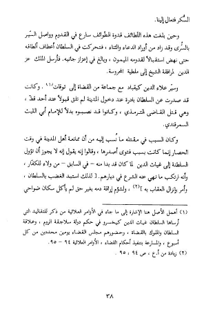 (¬1) أهمل الأصل هنا الإشارة إلى ما جاء في الأوامر العلائية من ذكر للتقاليد التي أرساها السلطان غياث الدين كيخسرو في حكم دولة سلاجقة الروم، وعلاقة السلطان والملوك بالقضاة، وحضورهم مجلس القضاء يومين محددين من كل أسبوع، والمسارعة بتنفيذ أحكام القضاء، الأوامر العلائية 94 - 95.