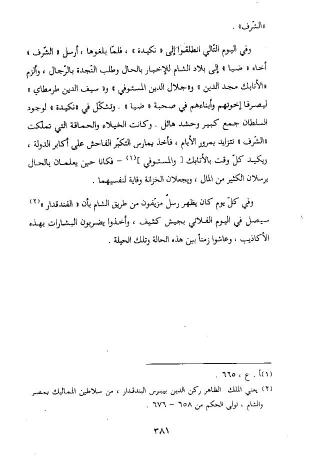 (¬2) يعني الملك الظاهر ركن الدين بيبرس البندقدار، من سلاطين المماليك بمصر والشام، تولى الحكم من 658 - 676.