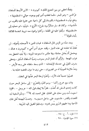 وفجأة اختفى من بين الجمع الملك «كيومرث» - الابن الأوسط للسلطان عزّ الدين- وعبر البحر، فلما تفقدوه أشير لهم بوجوده حوالي «قسطمونية».