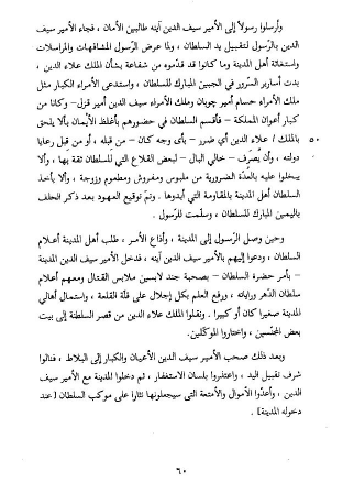 وبعد ذلك صحب الأمير سيف الدين الأعيان والكبار إلى البلاط، فنالوا شرف تقبيل اليد، واعتذروا بلسان الاستغفار، ثم دخلوا المدينة مع الأمير سيف الدين، وأعدّوا الأموال والأمتعة التى سيجعلونها نثارا على موكب السلطان [عند دخوله المدينة].