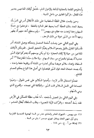 وفي اليوم التالي حين وصلت أسلحة الحصار ومعدّاته ووصل المشاة، أمر فأمسكوا المغازل بالليل وصنعوا السلالم وهيّأوا المنجنيق للعمل. فلم يكن لأولئك الملاعين من حيلة إلا إلقاء الحجارة، إذ لم يكن بوسعهم أن يتحركوا فوق السّور خشية أن يصابوا بالجراح من سنان السهام. ولما طالت مدّة [المقارعة] (¬2) أمر السلطان بإعداد سلالم عريضة يمكن لعشرة من المشاة أن يرتقوها دفعة واحدة، وأن يصعد شجعان الجند فوق السّور فيفصلون في أصل هذا النزاع بحكم الحسام القاطع.