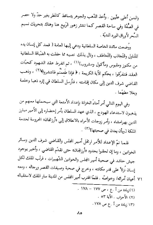 ووضعت مائدة الخاصة السلطانية ودعي إليها العامة [فمد كل إنسان يده للتّناول والتّجاذب والتّخاطف، ونال بذلك نصيبه مما حفلت به الضّيافة السلطانية من مكنوز وملبوس ومأكول ومشروب] (¬1)، ثم انفرط عقد الشهود كحبّات العقد فتفرّقوا، بحكم الآية الكريمة: فَإِذا طَعِمْتُمْ فَانْتَشِرُوا (¬2)، وذهب القاضي شرف الدين إلى مكان إقامته، فأرسل السلطان في إثره ذهبا وخلعة وبغلا مطهّما.