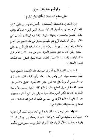 فقد وقعت على رجل من سكّان بلاد الروم كان يعرف أسماء أمراء الدولة جميعا وما يحملون من ألقاب/ وكانت له صلة بمعظمهم، وبذلت له مالا وفيرا، وحلفت له الأيمان بأن هذا الأمر لو تحقّق ورجع جيش الروم لسلّمته