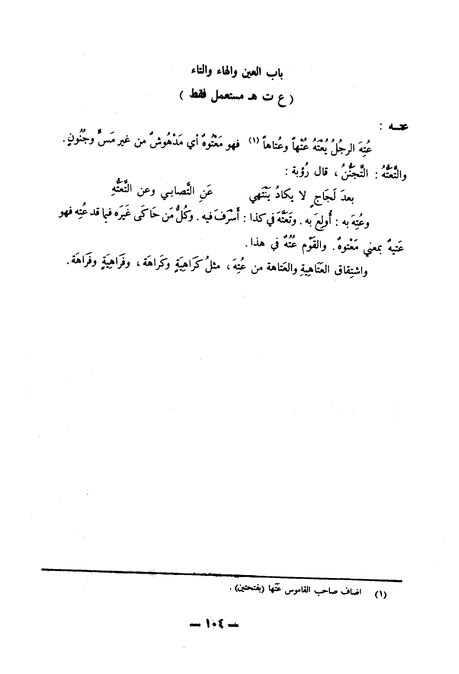 باب العين والهاء والتاء (ع ت هـ مستعمل فقط)