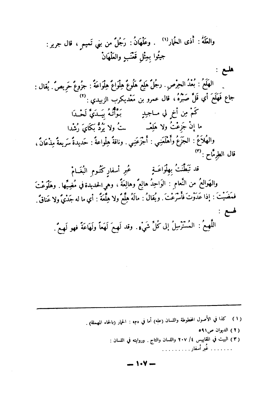 (3) البيت في المقاييس 4/ 207 واللسان والتاج. وروايته في اللسان: