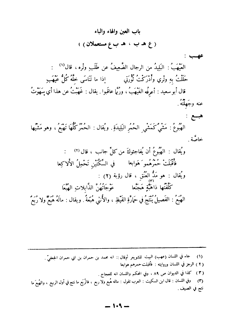 (1) جاء في اللسان (عهب) البيت للشويعر ثم قال: إنه (محمد بن حمران بن أبي حمران الجعفي) .