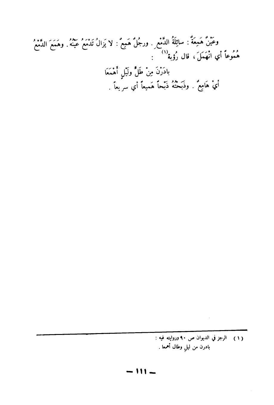 أي هَامِعٌ. وذَبَحْتُهُ ذَبْحاً هَميعاً أي سريعا.