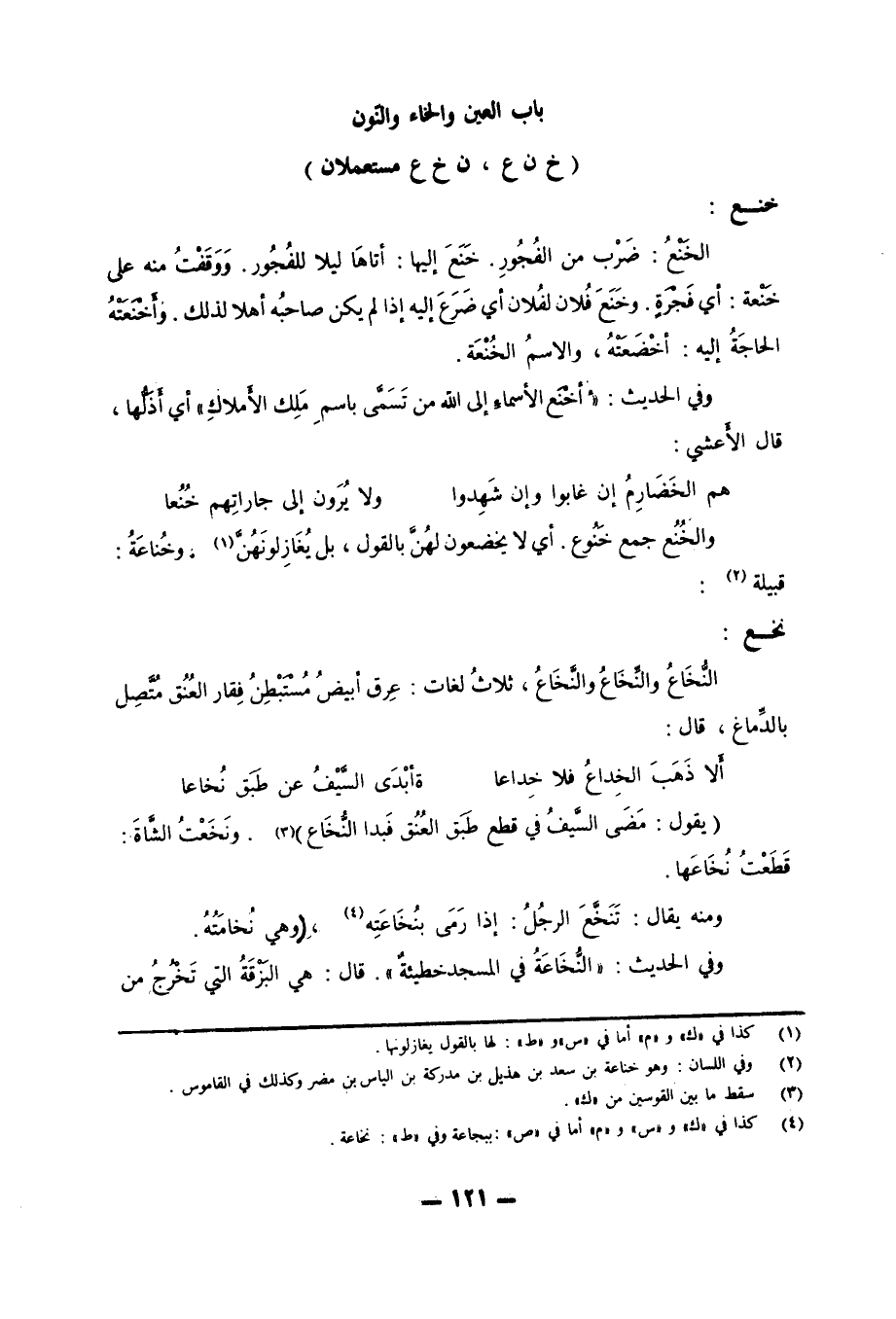 باب العين والخاء والنون (خ ن ع، ن خ ع مستعملان)