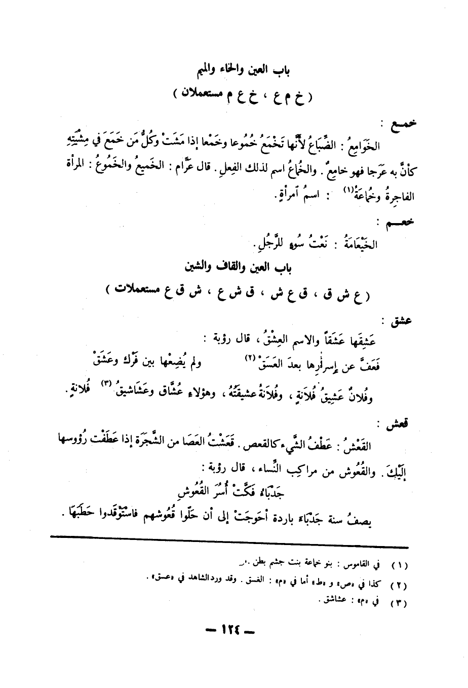 باب العين والقاف والشين (ع ش ق، ق ع ش، ق ش ع، ش ق ع مستعملات)