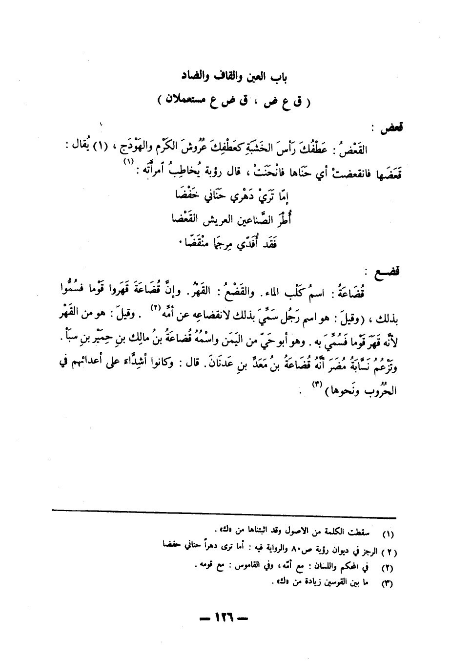 باب العين والقاف والضاد (ق ع ض، ق ض ع مستعملان)