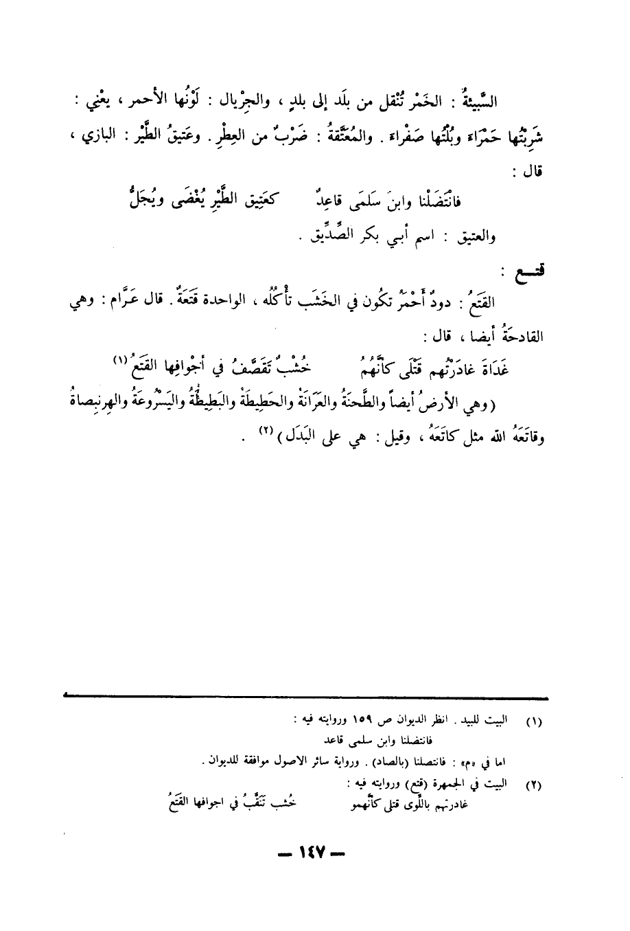 (2) البيت في الجمهرة (قتع) وروايته فيه: