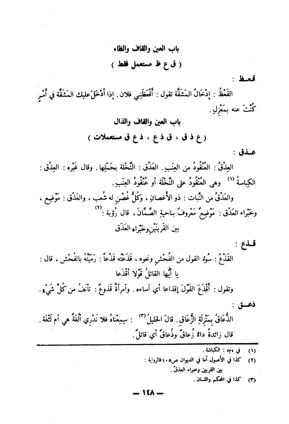 باب العين والقاف والذال (ع ذ ق، ق ذ ع، ذ ع ق مستعملات)