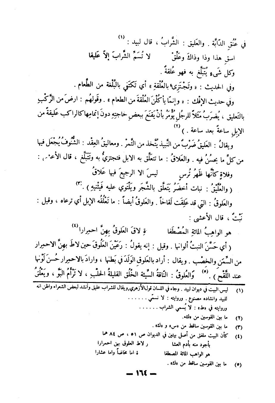 في عُنُقِ الدّابَّة والعَليق: الشَّرابُ، قال لبيد: «1»