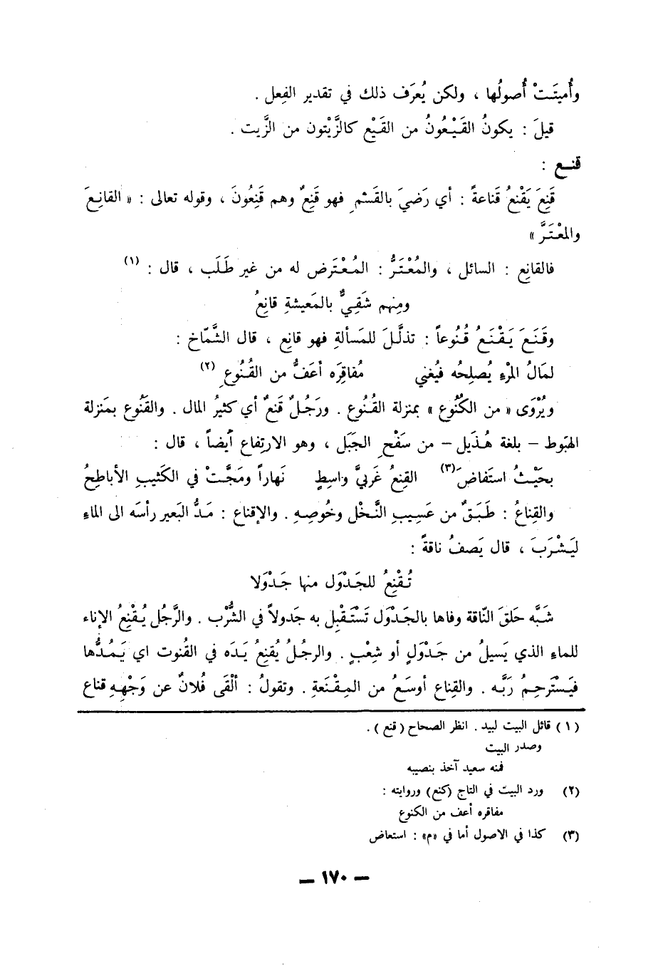 (1) قائل البيت (لبيد) . انظر الصحاح (قنع) . وصدر البيت