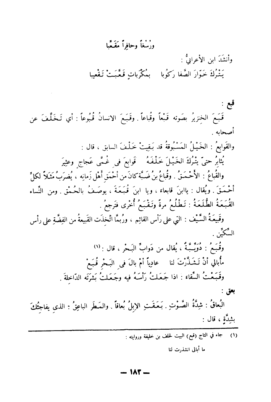 (1) جاء في التاج (قبع) البيت (لخلف بن خليفة) وروايته: