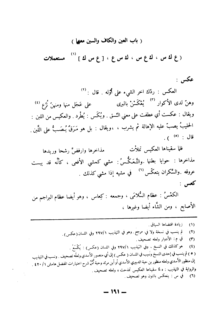 (باب العين والكاف والسين معهما) (ع ك س، ك ع س، ك س ع، [ع س ك] «1» مستعملات