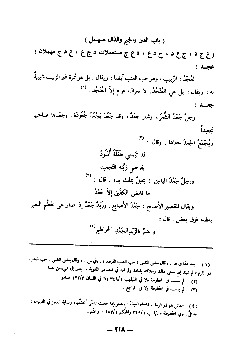 (باب العين والجيم والدال مهمل) (ع ج د، ج ع د، ج د ع، د ع ج مستعملات د ج ع، ع د ج مهملان)