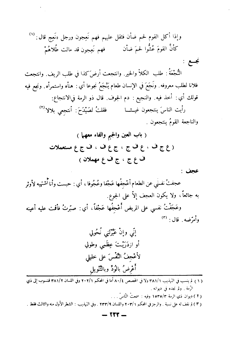 (باب العين والجيم والفاء معهما) (ع ج ف، ع ف ج، ج ع ف، ف ج ع مستعملات ف ع ج، ج ف ع مهملان)