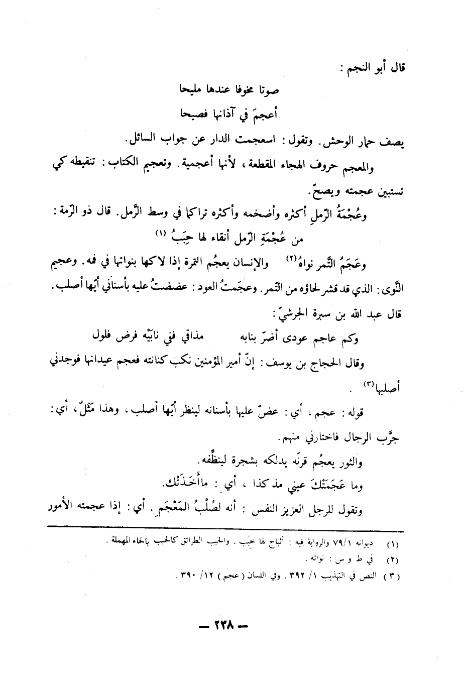 (3) النص في التهذيب 1/ 392. وفي اللسان (عجم) 12/ 390.