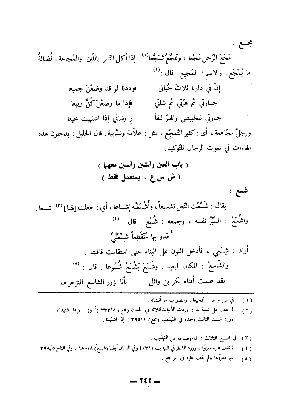 (2) لم نقف على نسبة لها: وردت الأبيات الثلاثة في اللسان (مجع) 8/ 333 (ألو) - (إذا اشتيدا) وورد البيت الثالث وحده في التهذيب (مجع) 1/ 395: إذا اشتهينا.