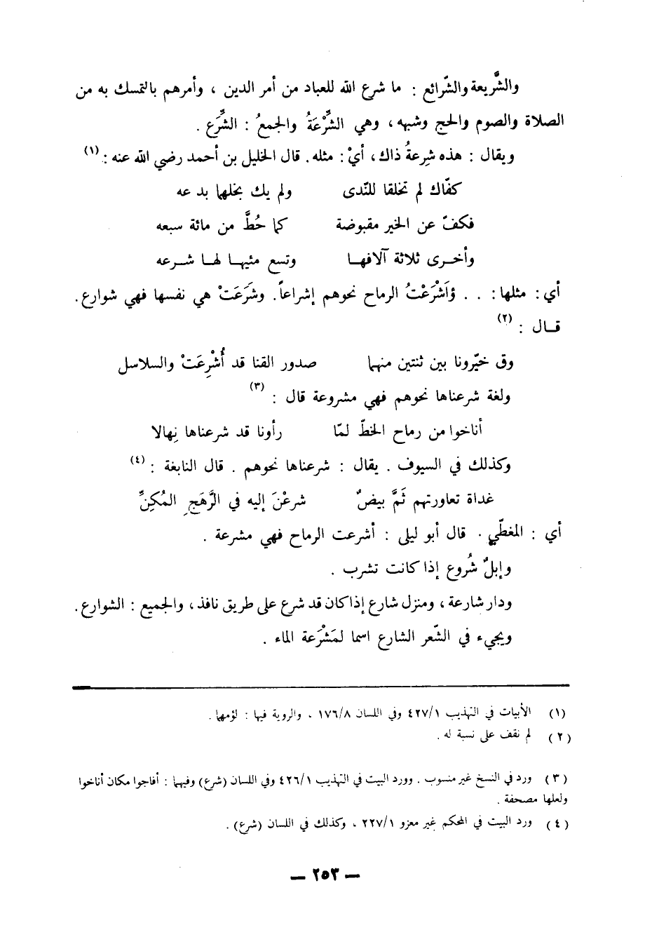 (4) ورد البيت في المحكم غير معزو 1/ 227، وكذلك في اللسان (شرع) .