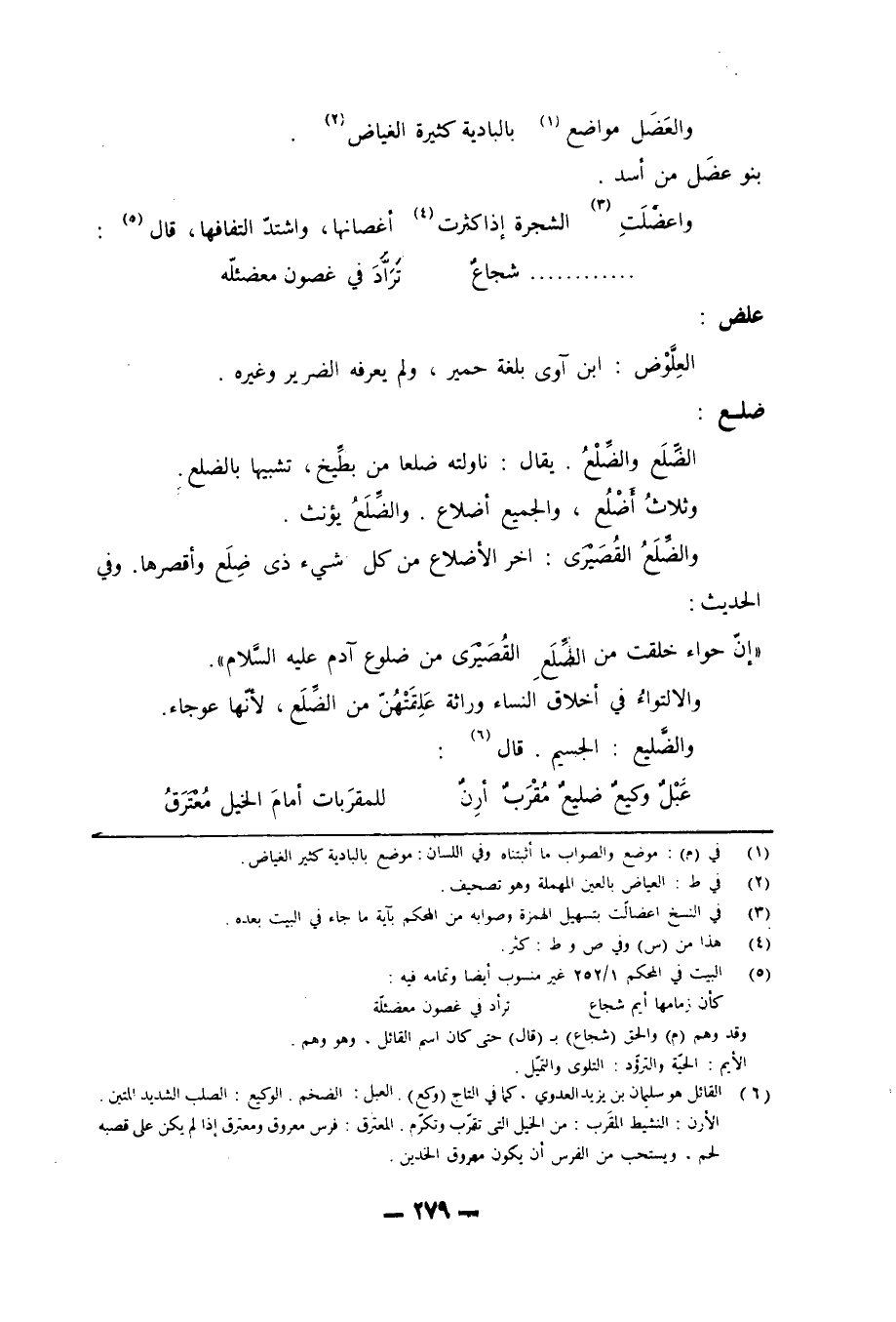 (3) في النسخ اعضالت بتسهيل الهمزة وصوابه من المحكم بآية ما جاء في البيت بعده.