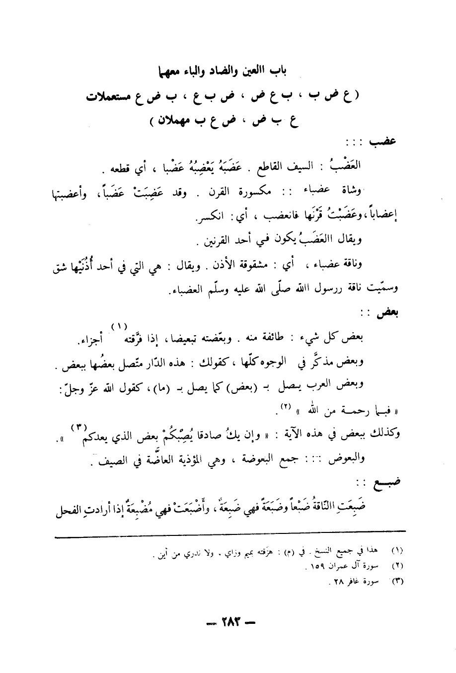 باب العين والضاد والباء معهما (ع ض ب، ب ع ض، ض ب ع، ب ض ع مستعملات ع ب ض، ض ع ب مهملان)