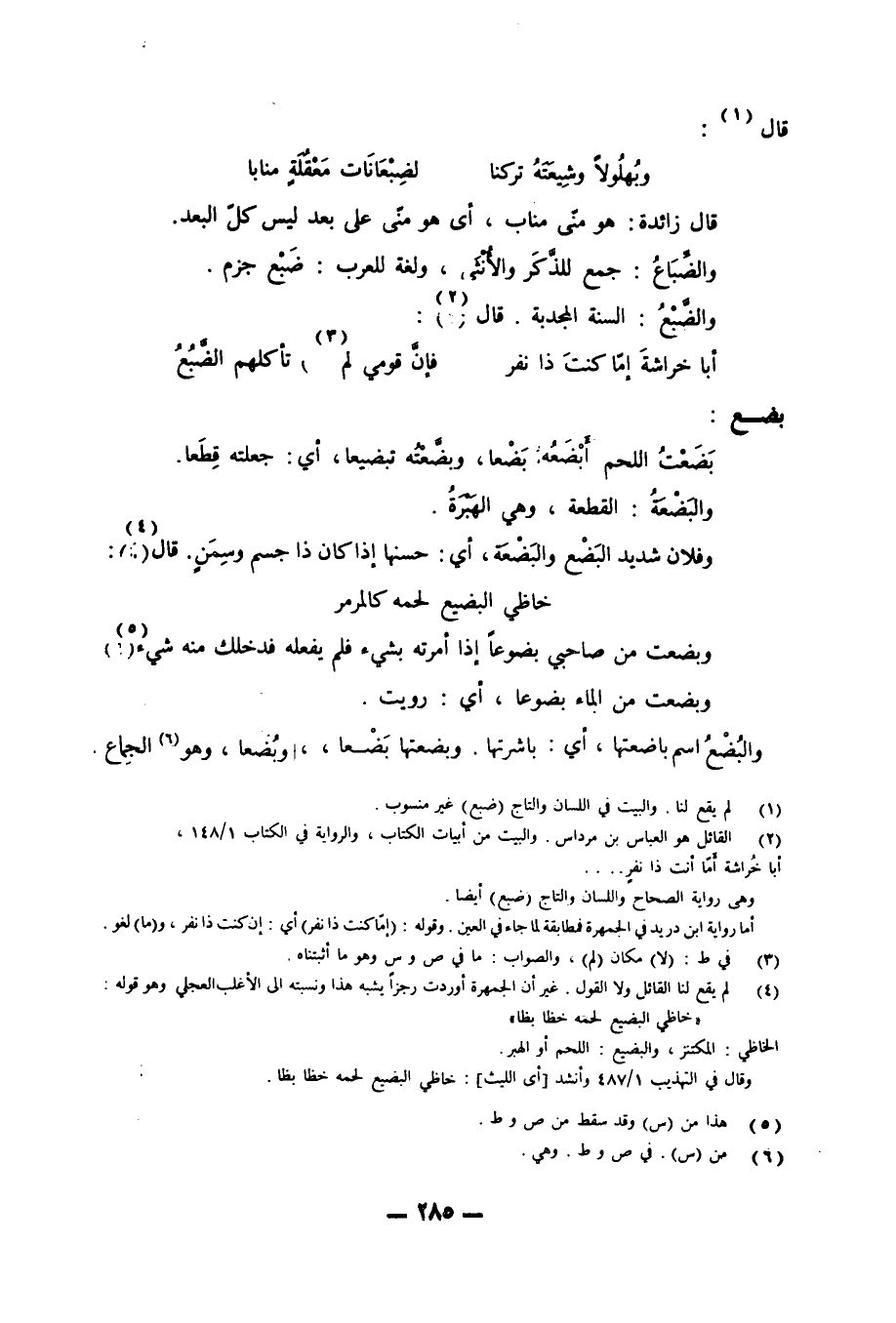 (1) لم يقع لنا. والبيت في اللسان والتاج (ضبع) غير منسوب.