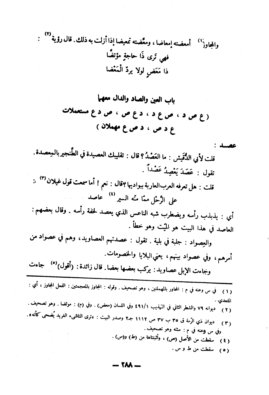 باب العين والصاد والدال معهما (ع ص د، ص ع د، د ع ص، ص د ع مستعملات ع د ص، د ص ع مهملان)