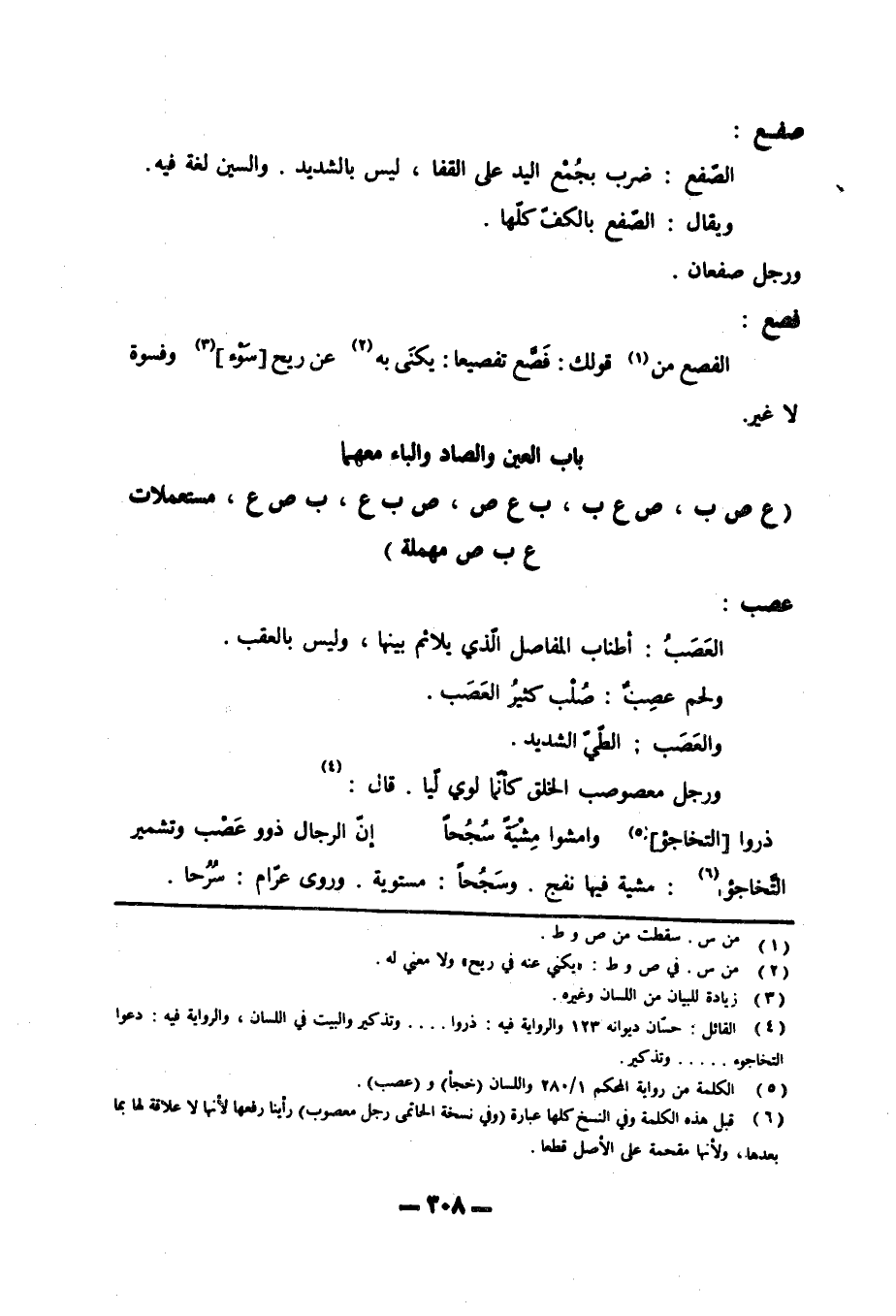 باب العين والصاد والباء معهما (ع ص ب، ص ع ب، ب ع ص، ص ب ع، ب ص ع، مستعملات ع ب ص مهملة)