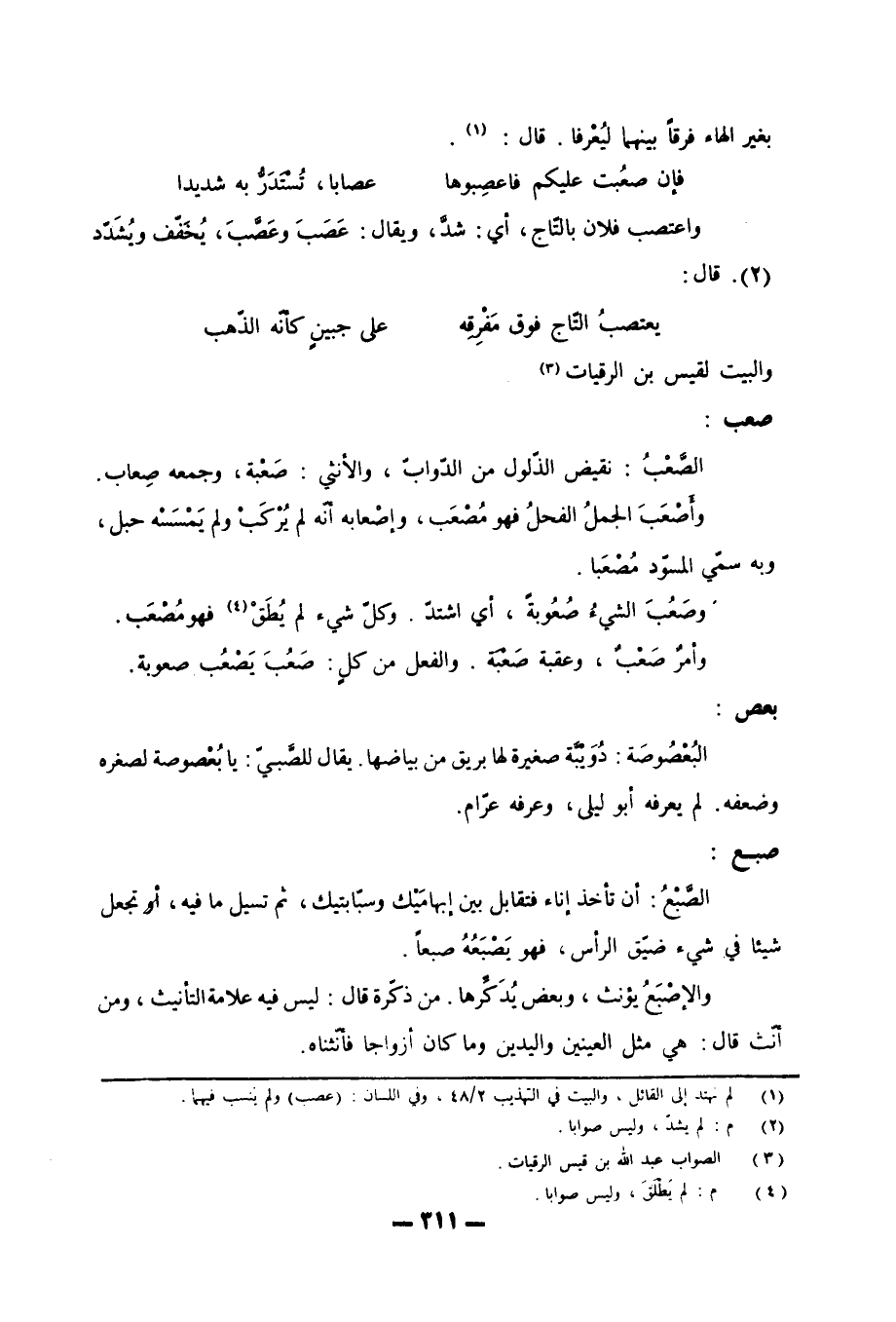 (1) لم نهتد إلى القائل، والبيت في التهذيب 2/ 48، وفي اللسان: (عصب) ولم ينسب فيهما.