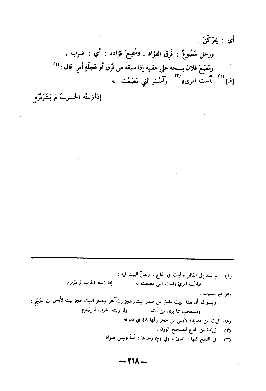 [ف] «2» باست امرىء «3» واسَتِ التي مَصَعْت به ... إذا زبنته الحرب لم يترمرم
