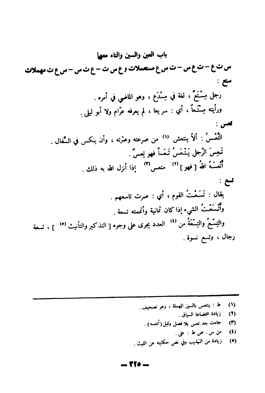 باب العين والسين والتاء معهما س ت ع- ت ع س- ت س ع مستعملات وع س ت- ع ت س- س ع ت مهملات