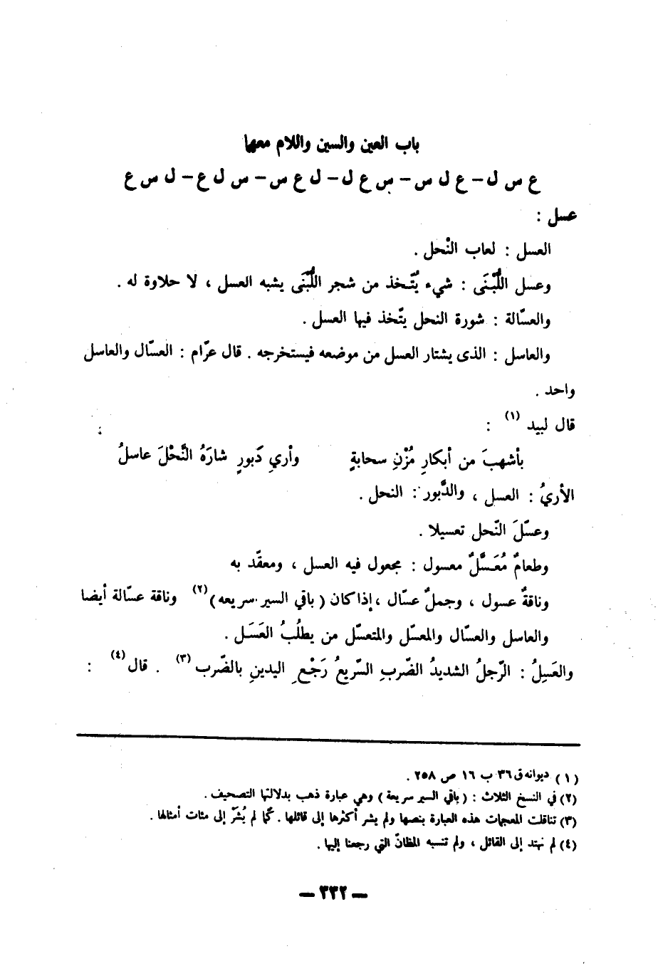 باب العين والسين واللام معهما ع س ل- ع ل س- س ع ل- ل ع س- س ل ع- ل س ع